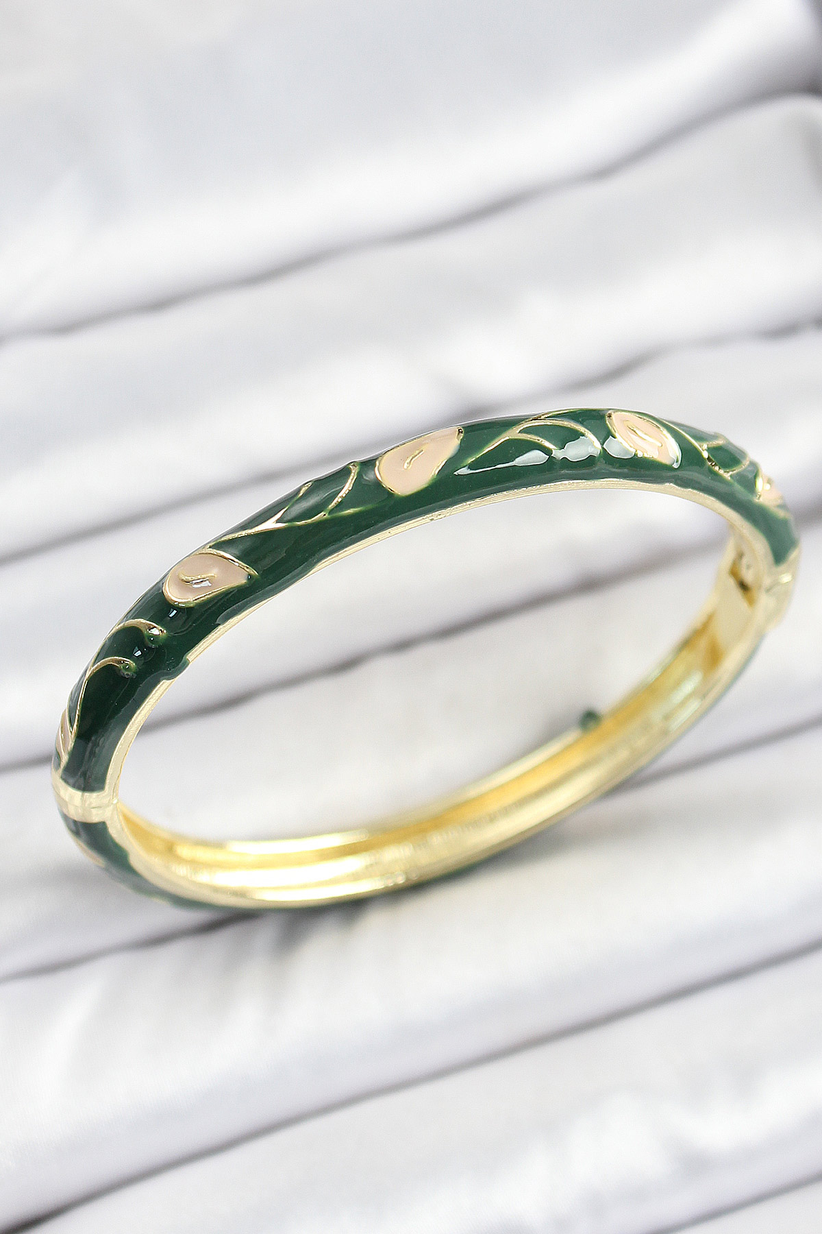 Mineli Pirinç Gold Renk Yeşil Çiçek Motifli Kadın Kelepçe - TJ-BB7149