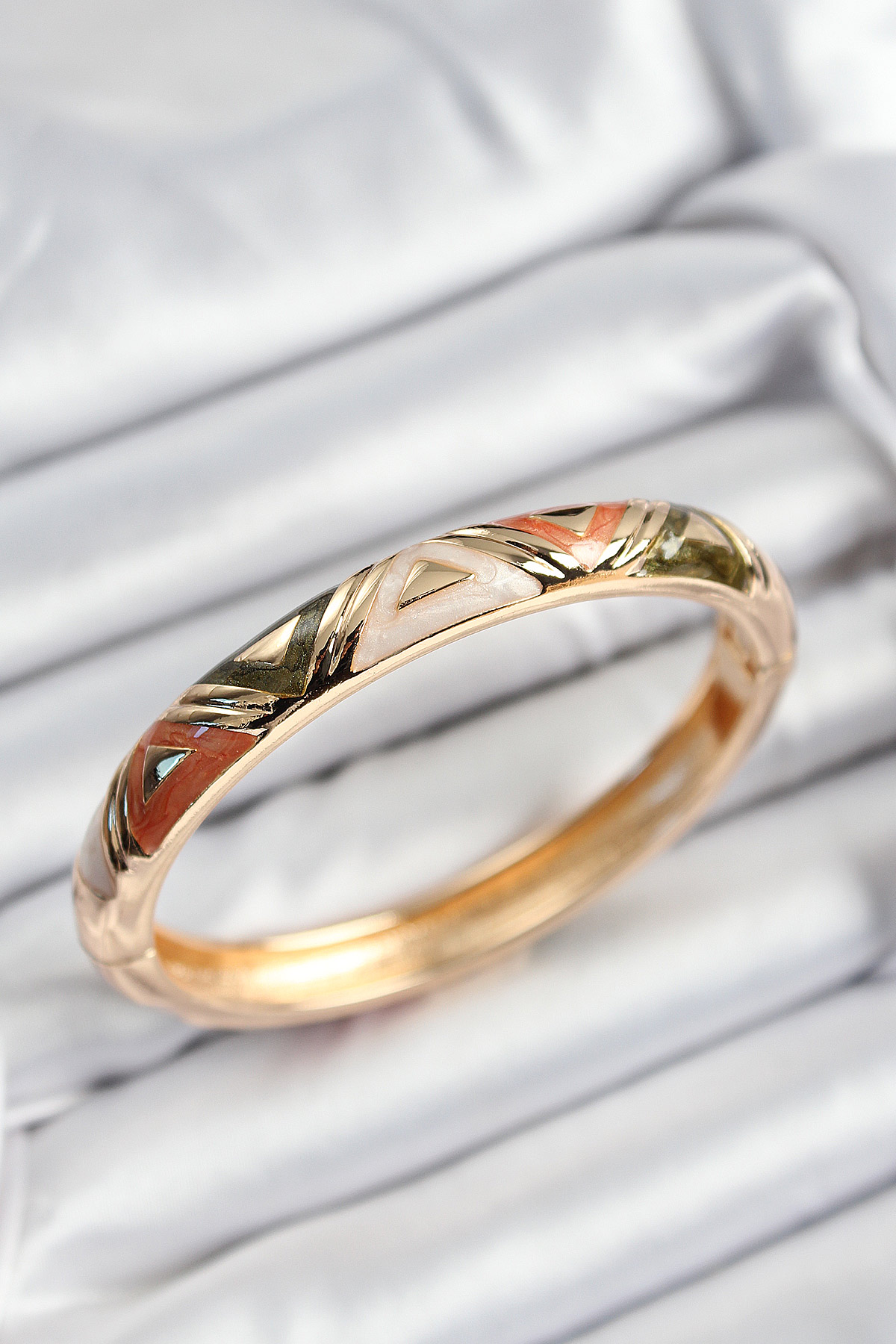 Mineli Pirinç Karışık Üçgen Motifli Gold Renk Kadın Kelepçe - TJ-BB7382