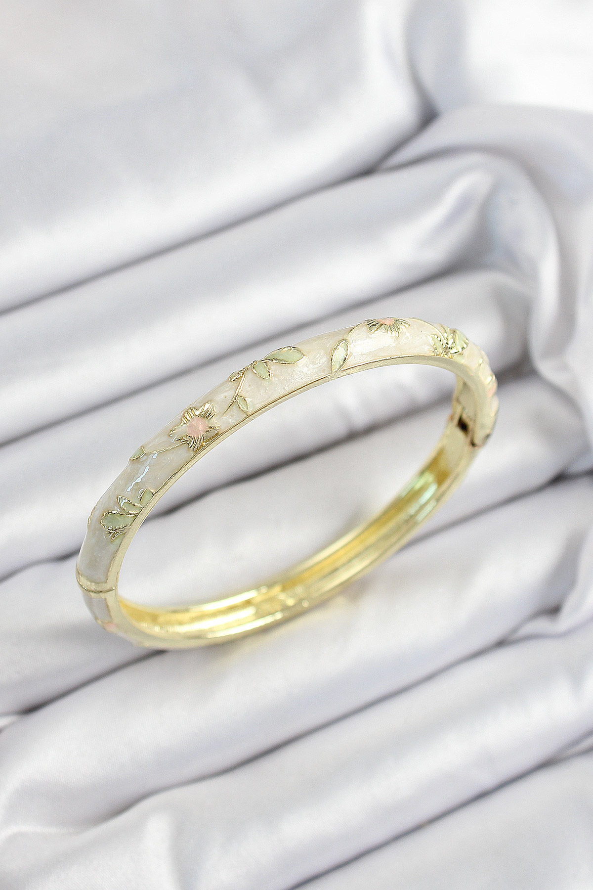 Mineli Pirinç Krem Çiçek Motifli Gold Renk Kadın Kelepçe - TJ-BB7438
