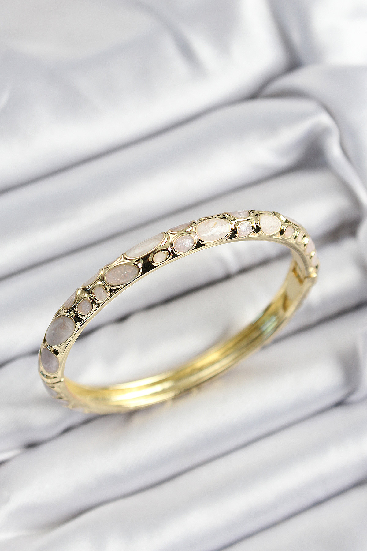 Mineli Pirinç Krem Petek Motifli Gold Renk Kadın Kelepçe - TJ-BB7405