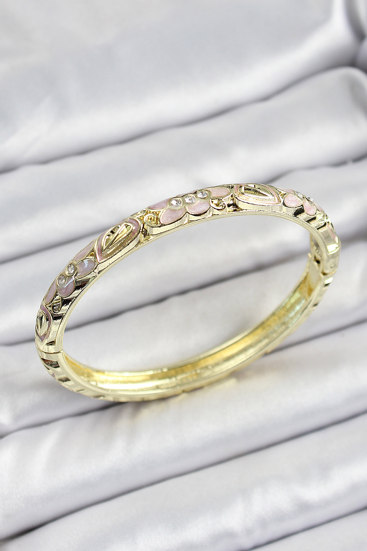 Mineli Pirinç Krem Renk Çiçek Desenli Kadın Kelepçe - TJ-BB7151