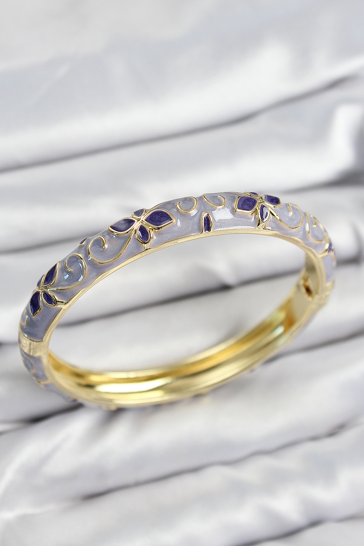 Mineli Pirinç Mor Çiçek Motifli Gold Kadın Kelepçe - TJ-BB7635