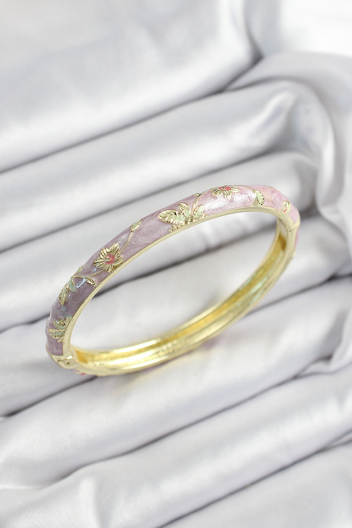 Mineli Pirinç Mor Çiçek Motifli Gold Renk Kadın Kelepçe - TJ-BB7446