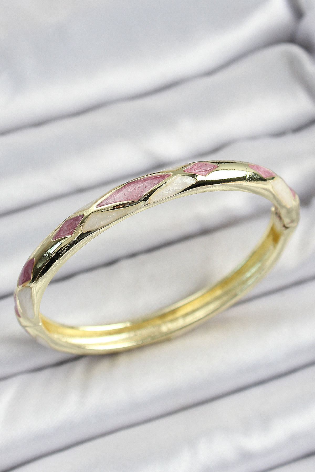 Mineli Pirinç Pembe Beyaz Geometrik Motifli Kadın Kelepçe - TJ-BB7155