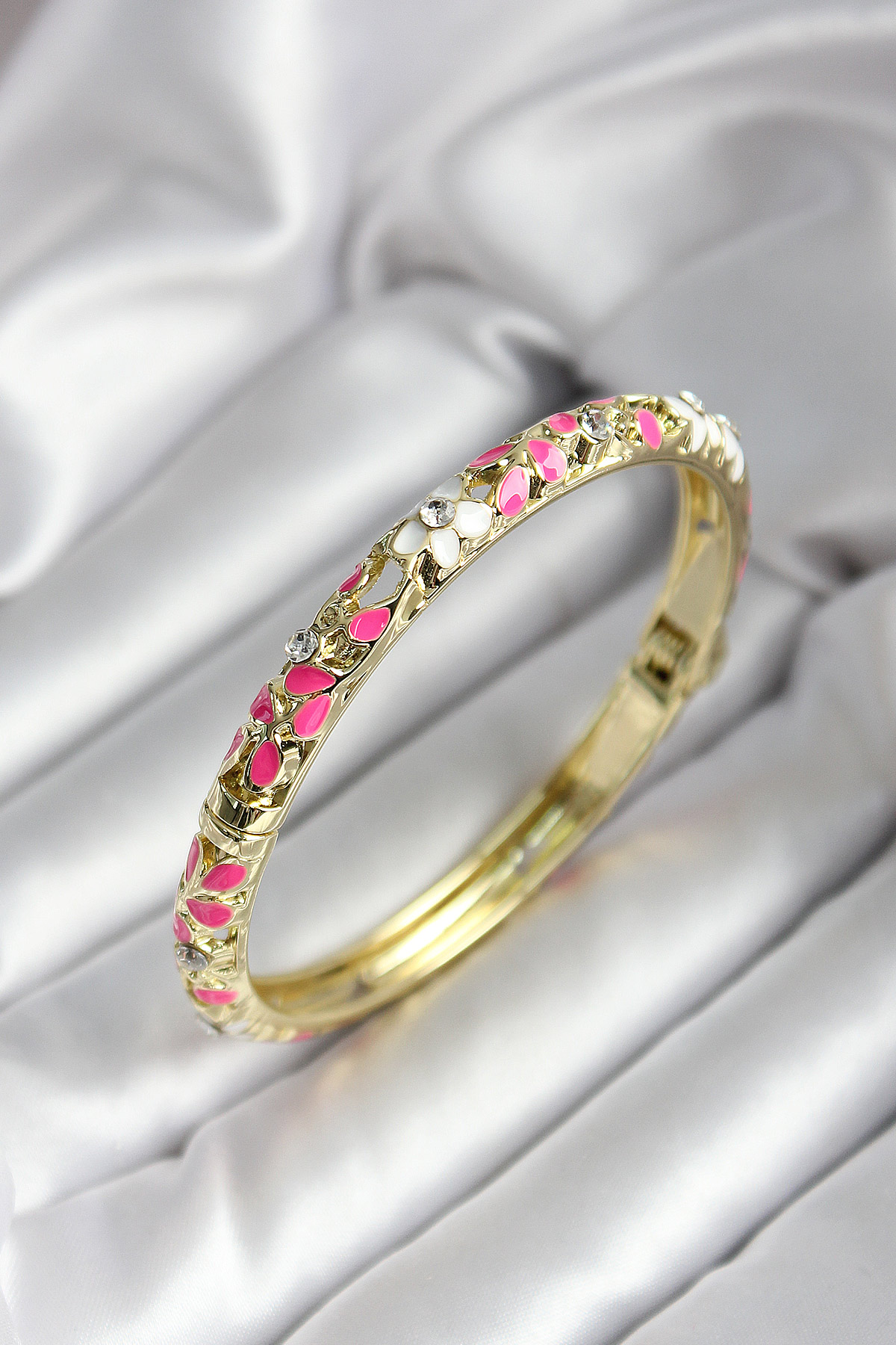 Mineli Pirinç Pembe Çiçek Desenli Gold Renk Kadın Kelepçe - TJ-BB7020