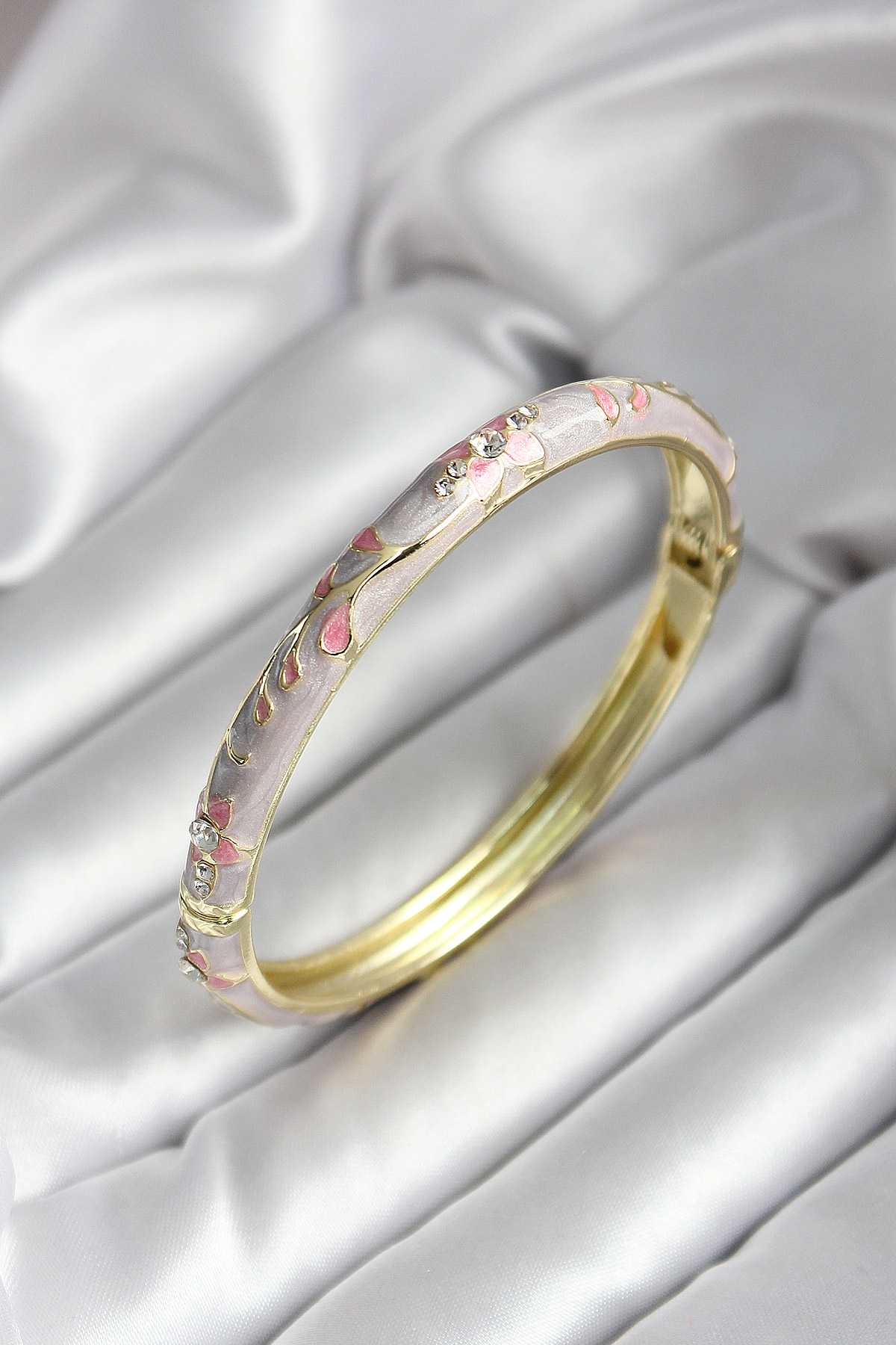 Mineli Pirinç Pembe Çiçek Desenli Gold Renk Kadın Kelepçe - TJ-BB7022