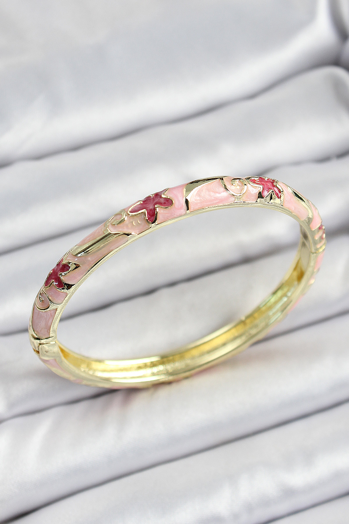 Mineli Pirinç Pembe Çiçek Desenli Kadın Kelepçe - TJ-BB7161
