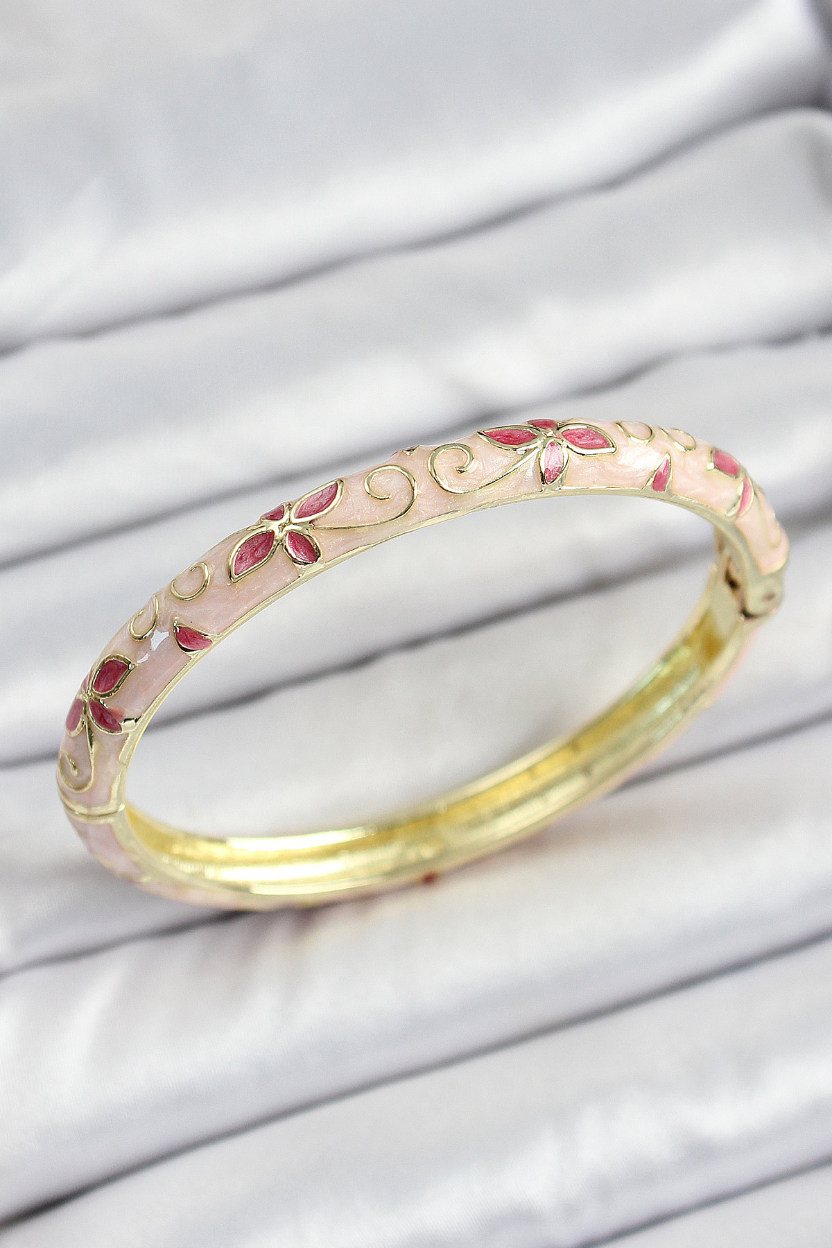 Mineli Pirinç Pembe Çiçek Desenli Kadın Kelepçe - TJ-BB7168