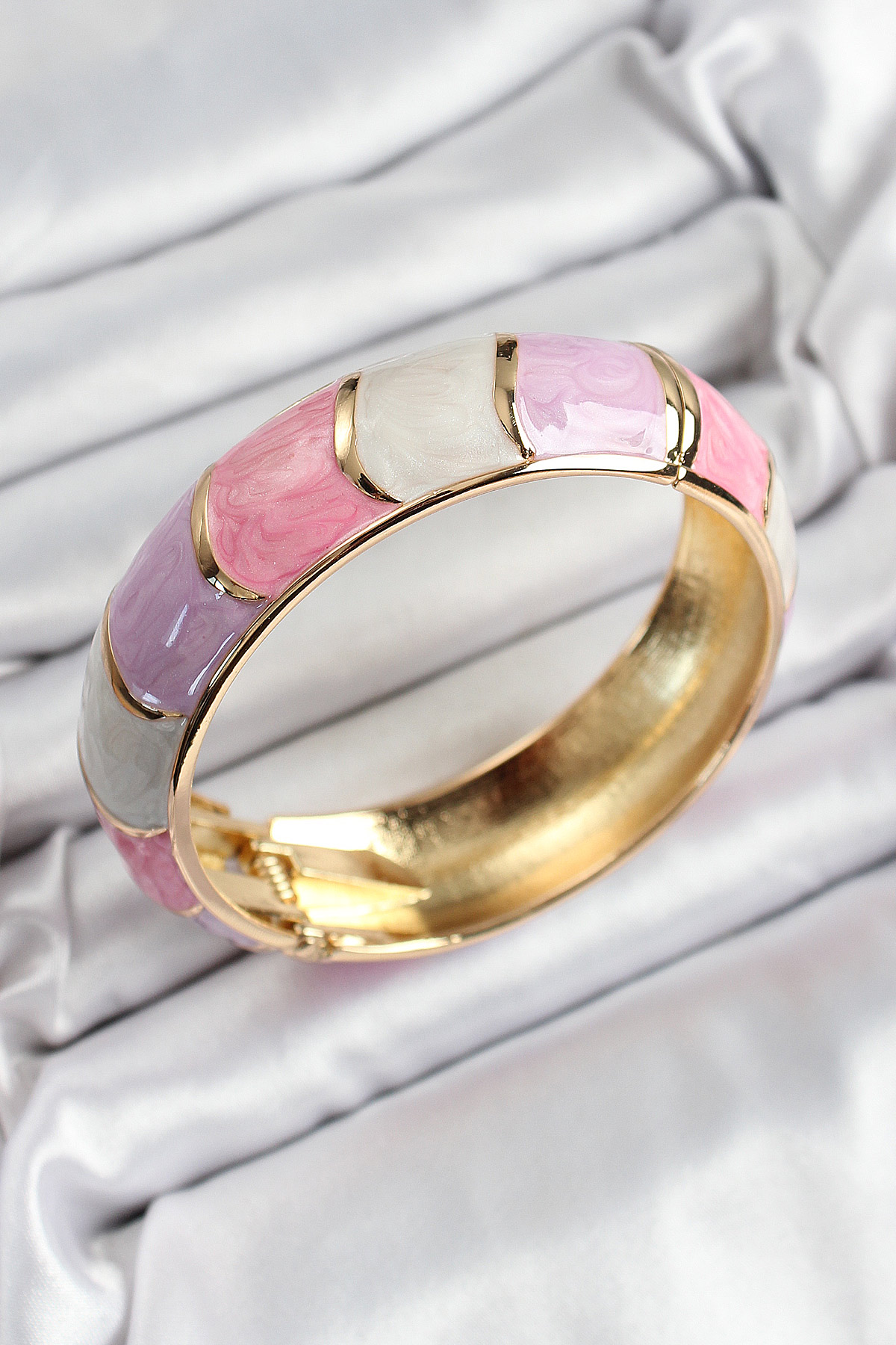 Mineli Pirinç Pembe Mor Beyaz Renk Motif Desenli Kadın Kelepçe - TJ-BB7195