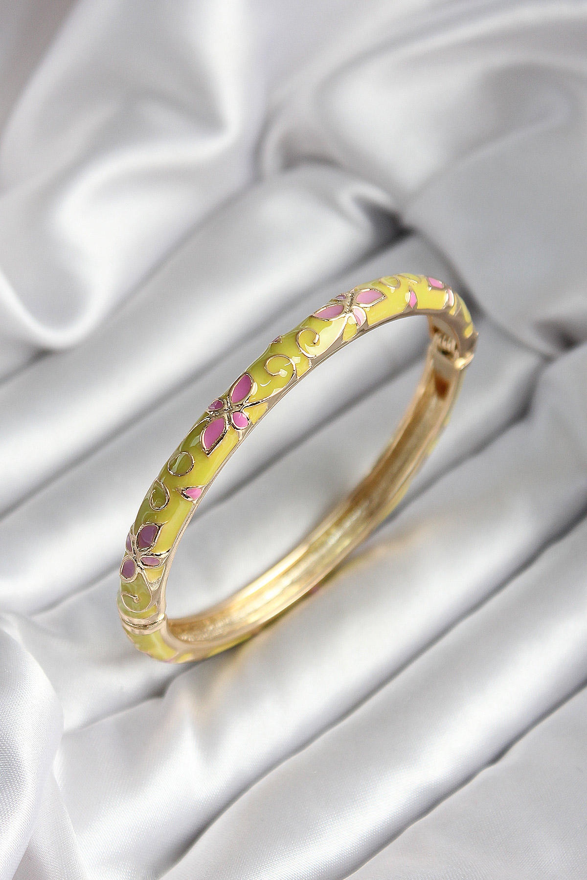 Mineli Pirinç Sarı Çiçek Desenli Gold Renk Kadın Kelepçe (çap 60 mm) - TJ-BB7000