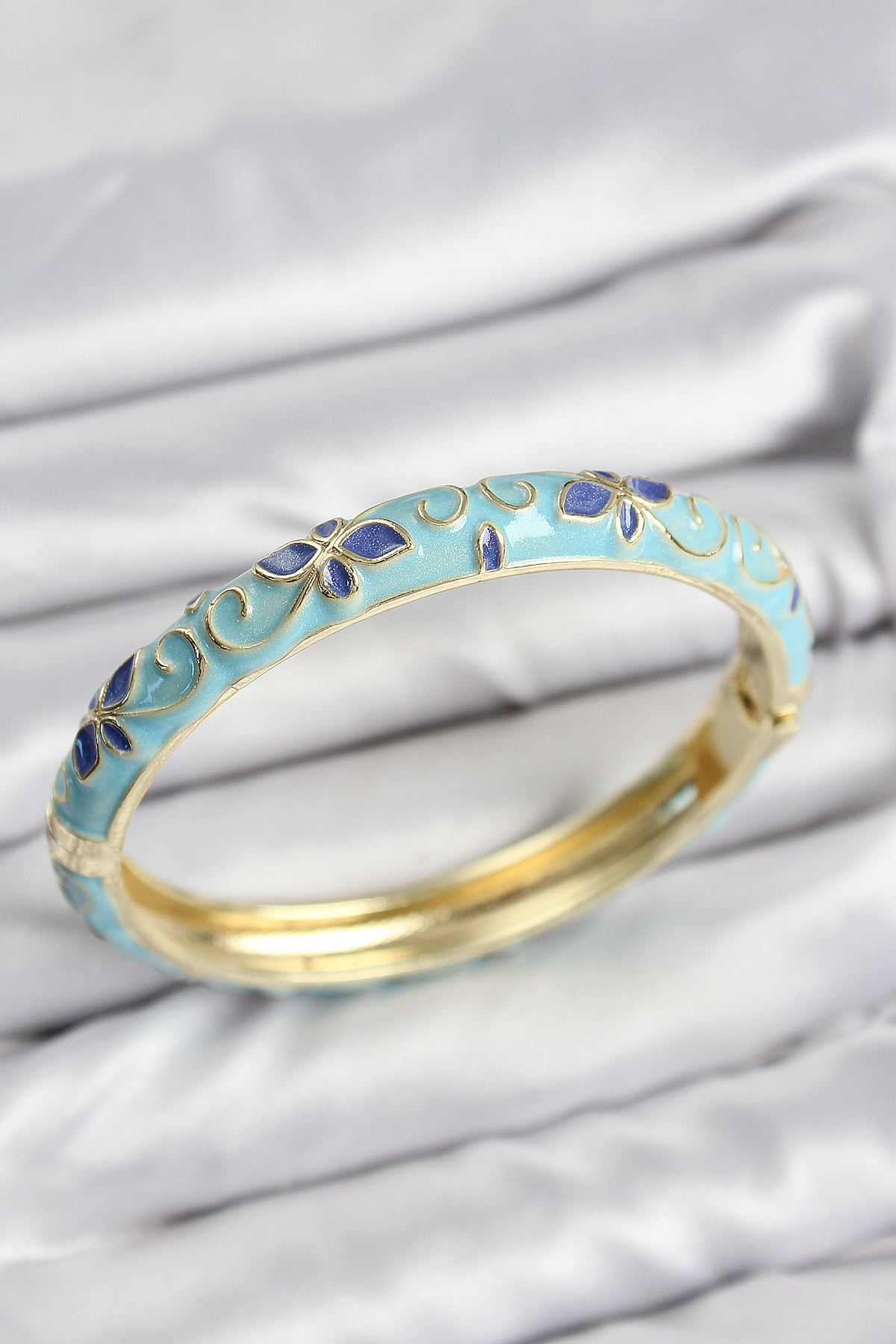 Mineli Pirinç Turkuaz Çiçek Motifli Gold Kadın Kelepçe - TJ-BB7623