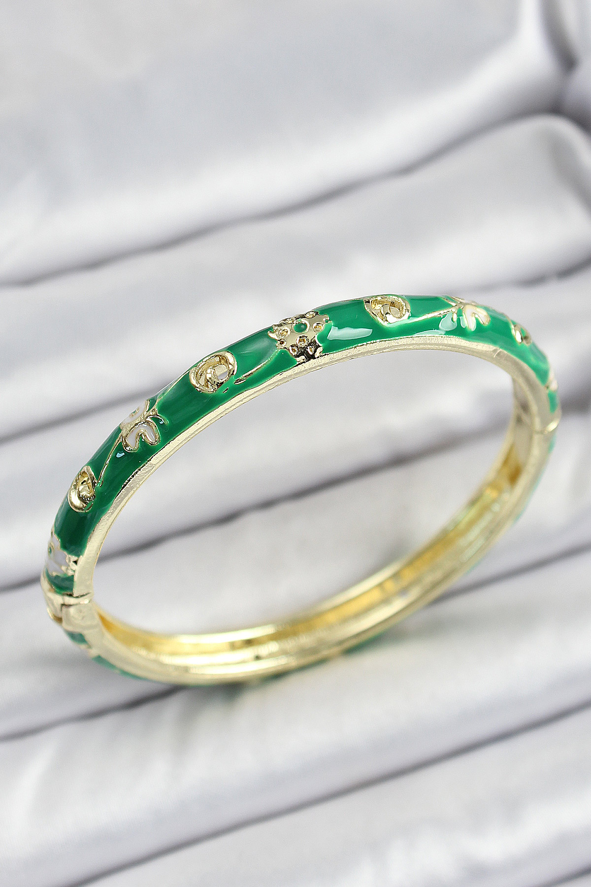 Mineli Pirinç Yeşil Renk Motif Desenli Kadın Kelepçe - TJ-BB7185