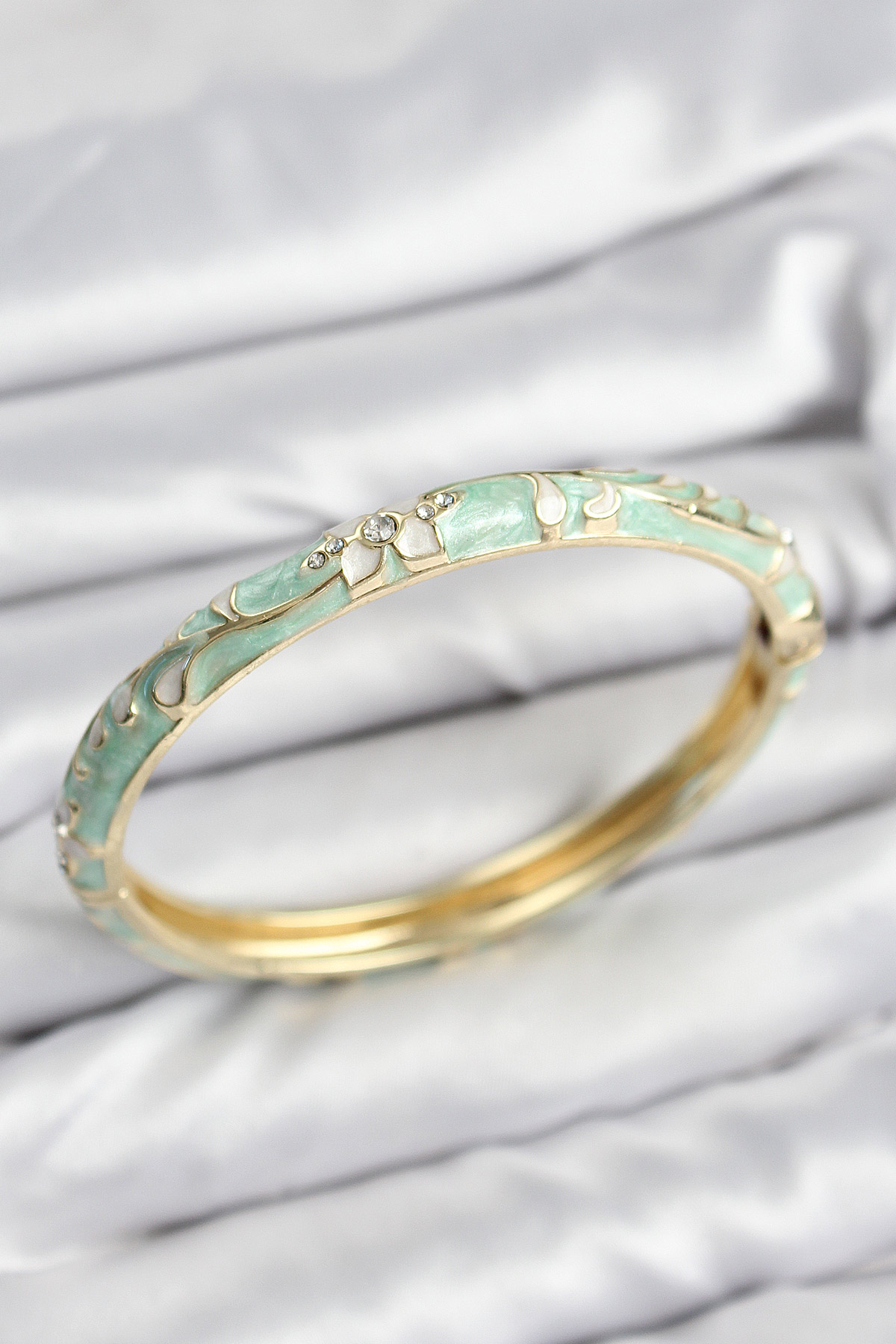 Mineli Pirinç Zirkon Taşlı Su Yeşili Çiçek Motifli Gold Kadın Kelepçe - TJ-BB7627