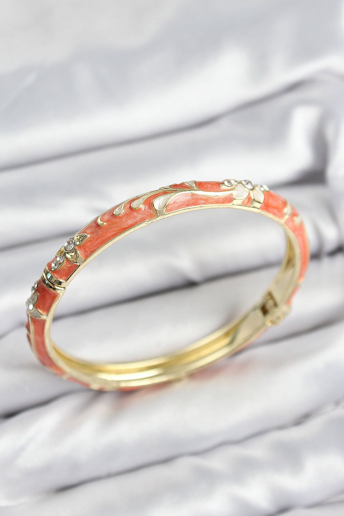 Mineli Pirinç Zirkon Taşlı Turuncu Çiçek Motifli Gold Kadın Kelepçe - TJ-BB7630