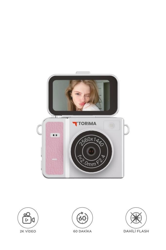 Mini Dijital Kamera 2K çözünürlük desteği ve 180° dönebilen flip ekranı sayesinde selfie, vlog ve günlük çekimler için ideal bir kullanım sunar. Kompakt tasarımı, dahili filtreleri ve taşınabilir yapısı ile pratik ve eğlenceli bir çekim deneyimi sağlar.