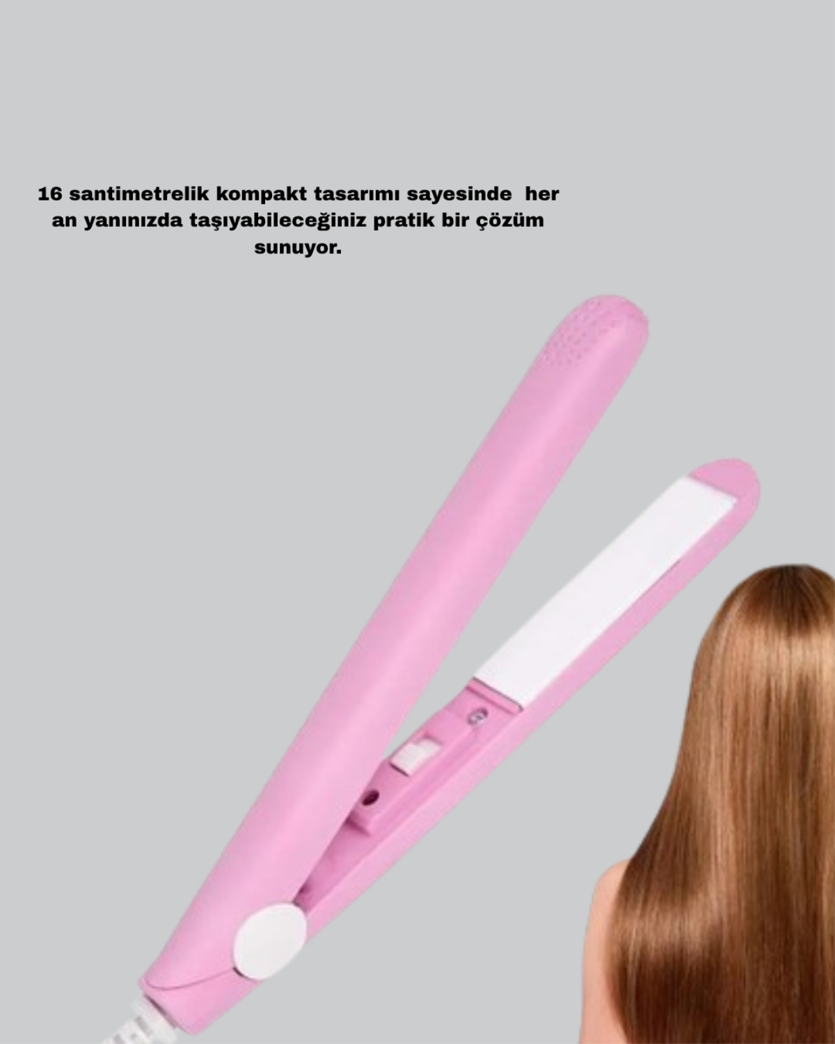 16 cm’lik kompakt boyutu, taşınabilirliğiyle ön plana çıkar. Seyahatlerde, işte veya çantanızda her an yanınızda taşıyabileceğiniz kadar hafif ve kullanışlıdır. Ayrıca kahkül, kısa saç ve uç düzleştirmeleri için mükemmel bir çözümdür.