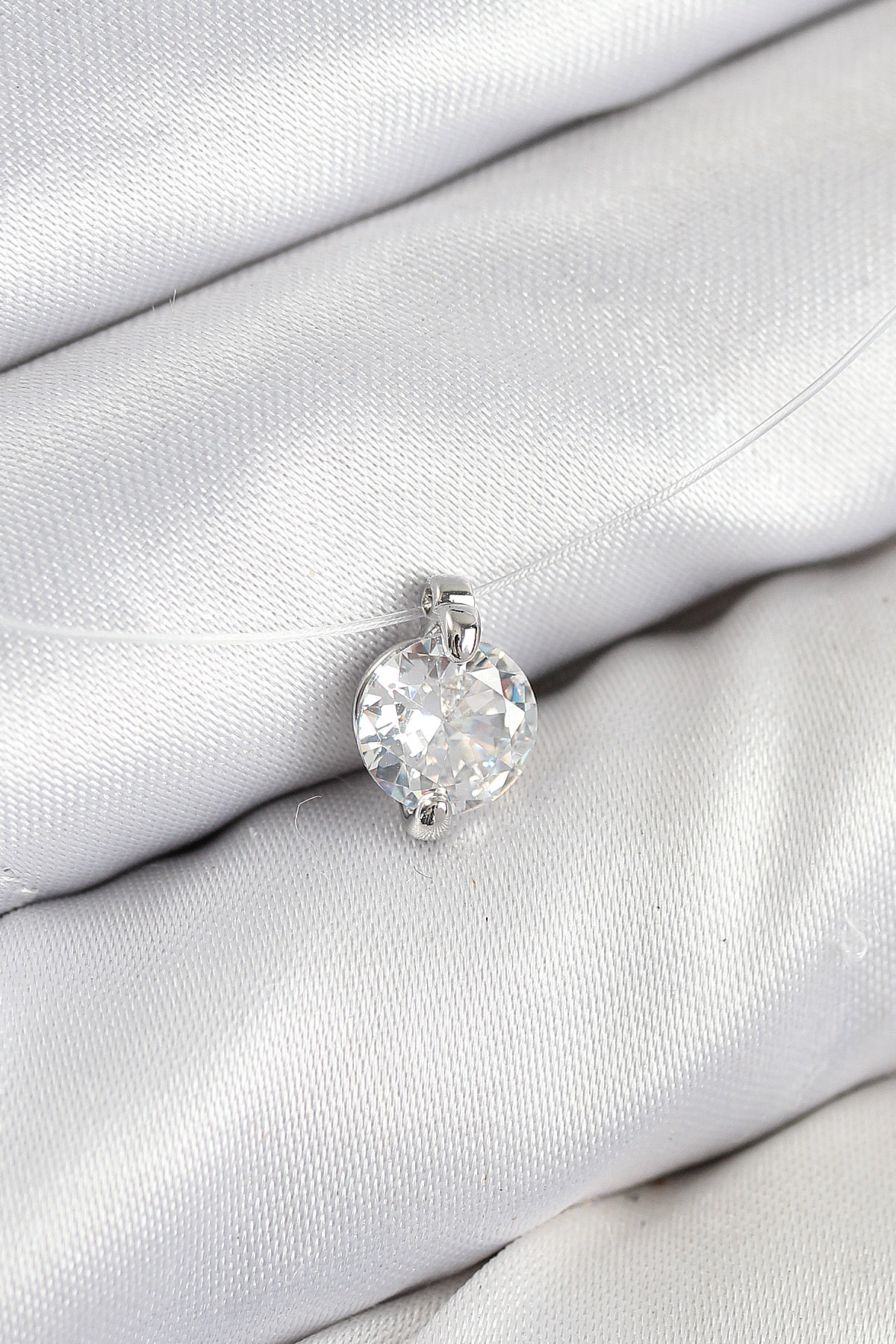 Misineli Zirkon Taşlı Model Gümüş Renk Hayalet Kolye - TJ-BKO10505