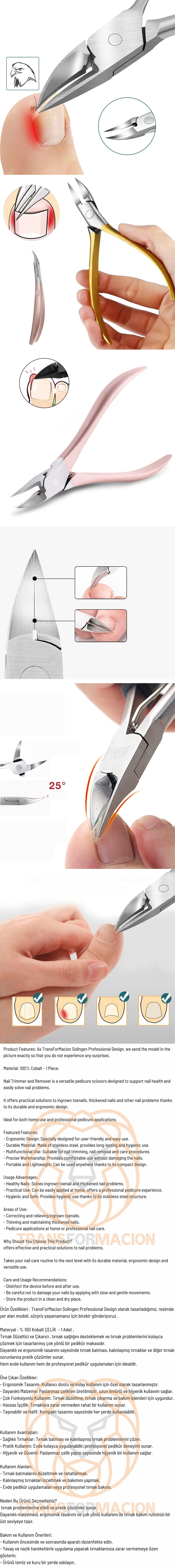 Dayanıklı ve ergonomik tasarımı sayesinde tırnak batması, kalınlaşmış tırnaklar ve diğer tırnak sorunlarına pratik çözümler sunar.