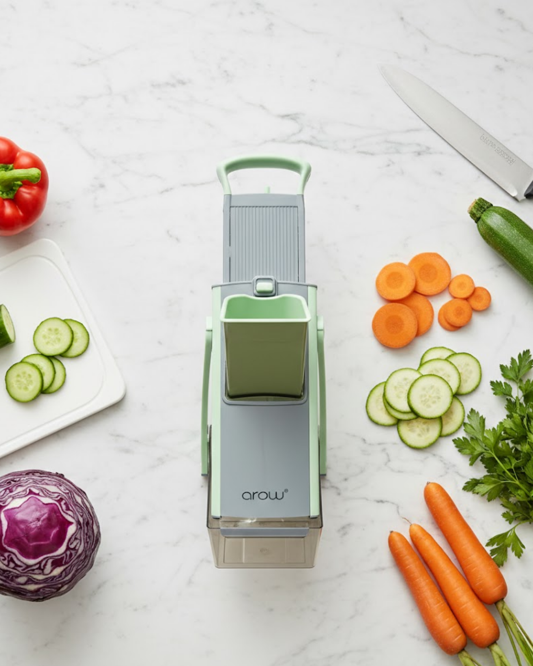 Üst bastırma aparatı, güvenli ve dengeli kullanım sağlar. Ellerin bıçaklara temas etmesini önleyen tasarım, ürünü en güvenli seçeneklerden biri haline getirir. Katlanabilir yapısı ile saklaması son derece kolaydır.