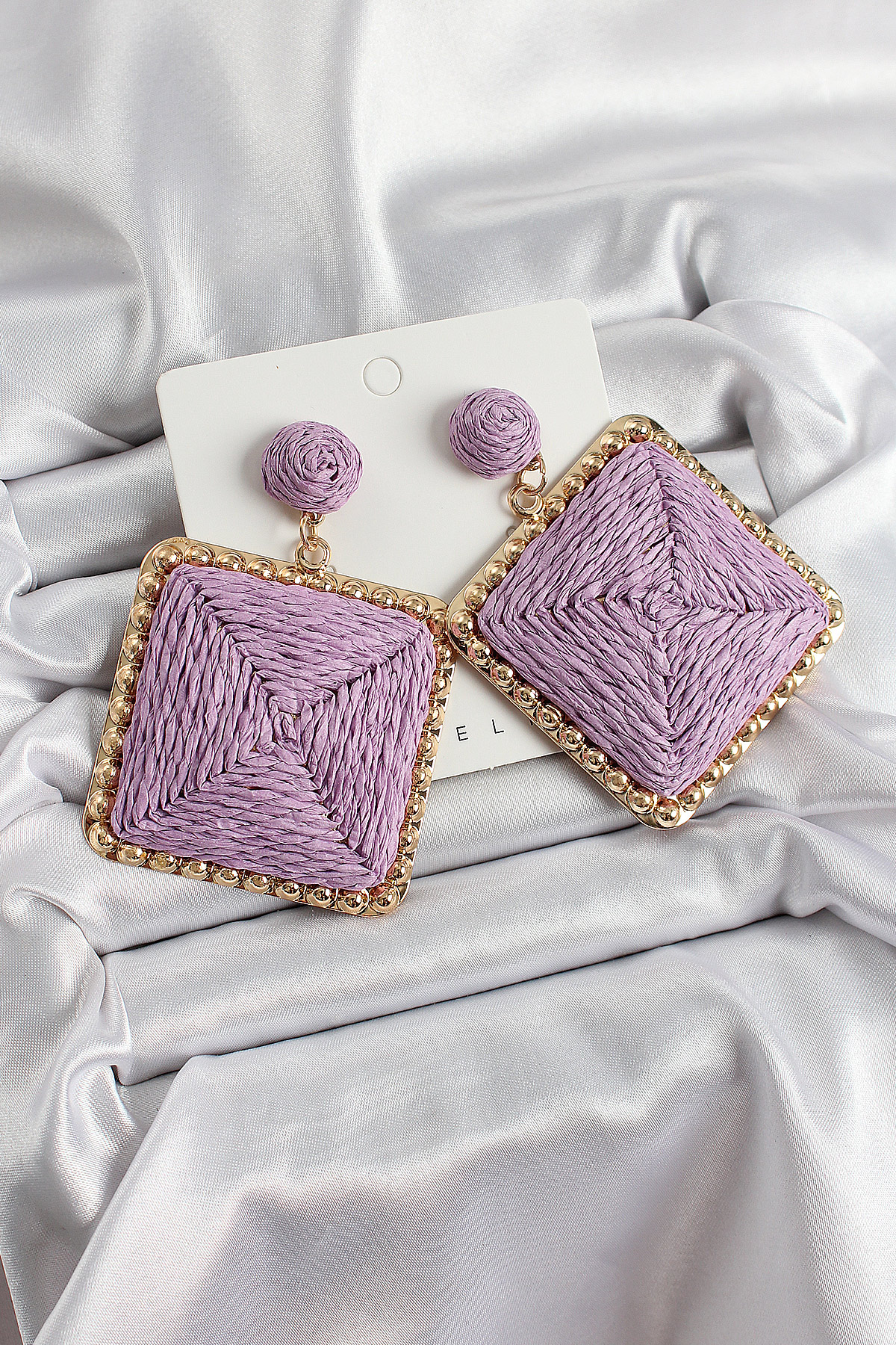 Mor Kare Figürlü Hasır Örgü Model Gold Renk Kadın Küpe - TJ-BKP10719