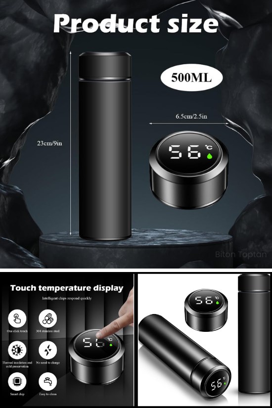 Mug Termos Led Sıcaklık Göstergeli Vakumlu Mug Termos Bardak 500 ML Dijital Sıcaklık Göstergeli Termos