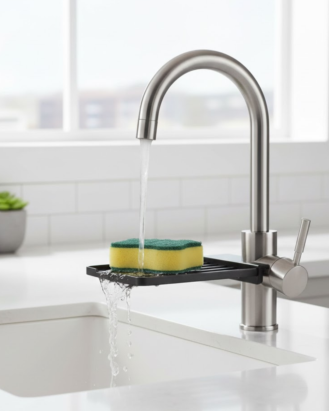 Bu musluk organizeri, mutfakta küçük ama etkili bir düzen sağlayarak günlük bulaşık ve temizlik işlerinizi daha konforlu hale getirir. Hijyen, düzen ve kullanım kolaylığını bir arada sunan pratik bir mutfak yardımcısıdır.