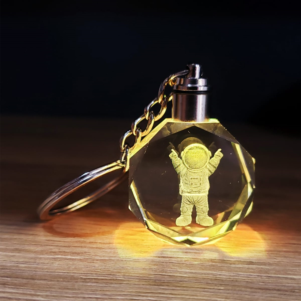 1 adet mutlu astronot tasarımlı renk değiştiren kristal cam anahtarlık