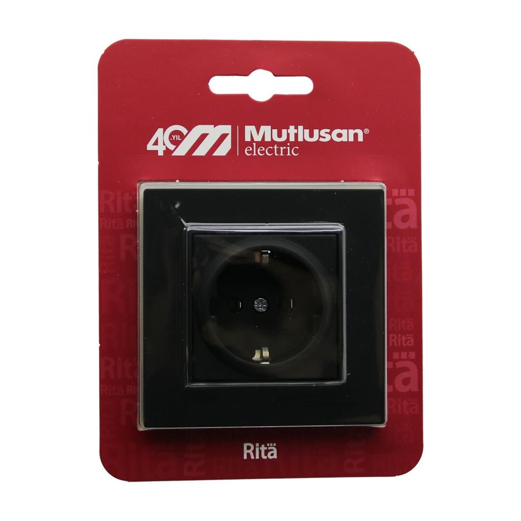 Mutlusan Rita-2220 600 0284B Blisterli - Kartlı Siyah - Topraklı Priz Çerçeveli