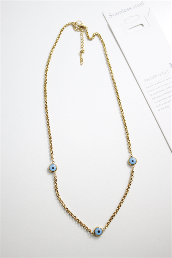 Nazar Boncuk Çelik Kolye - Altın