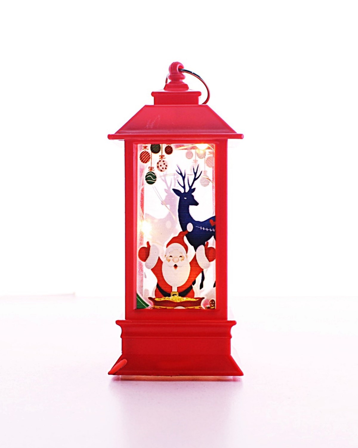Noel Baba Temalı Led Titreyen Mumlu Mini Fener Asma Kulplu Kırmızı