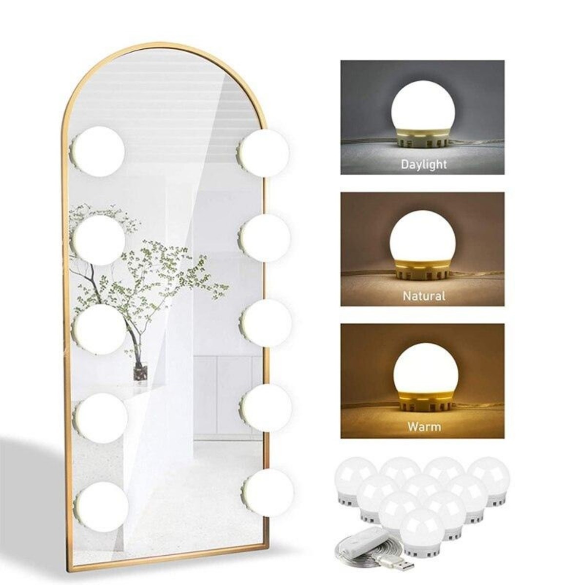 Nostalji Hollywood Tarzı 10'lu Makyaj Aynası Masası Beyaz Led Işıklı Lamba USB