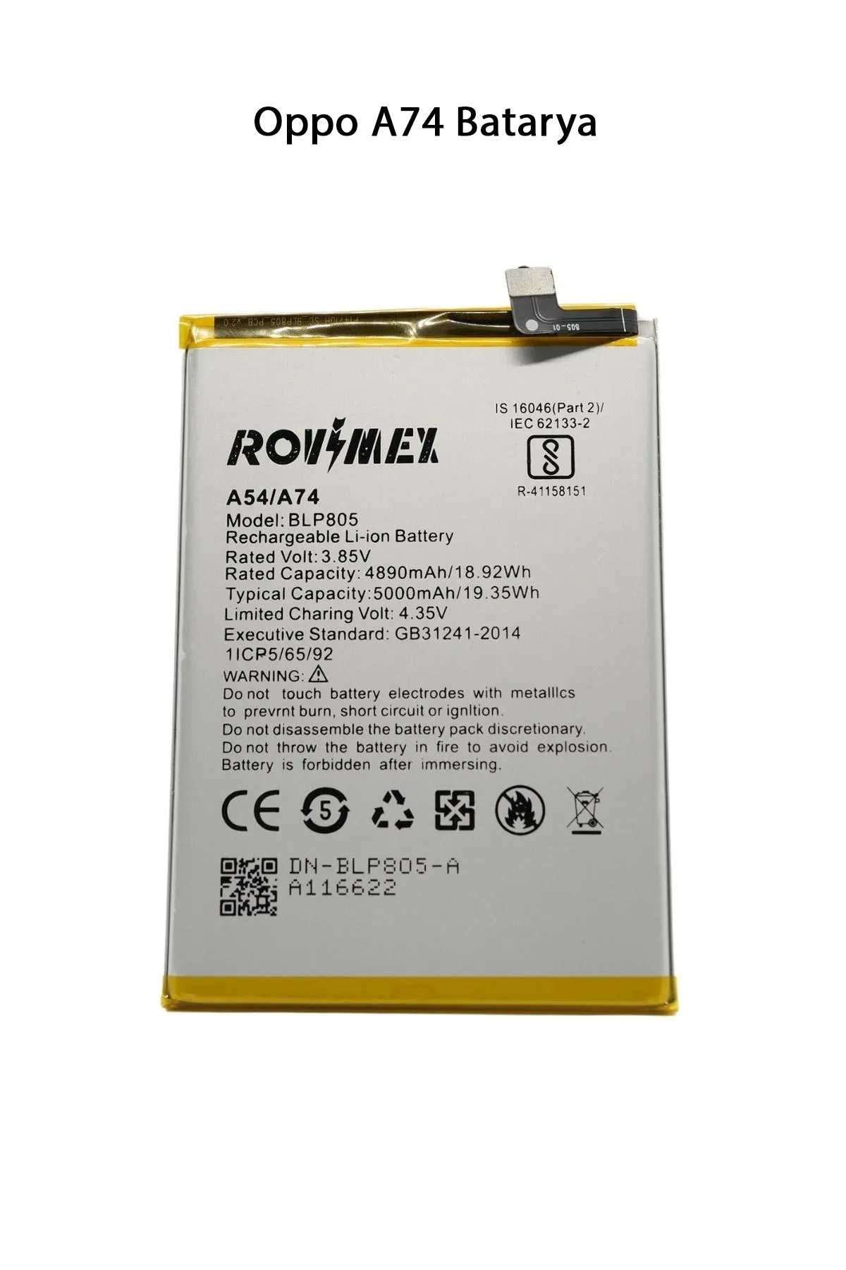 | Oppo A74, 5000 mAh kapasiteli bir bataryaya sahip. Bu batarya, 33W hızlı şarj desteği ile birlikte gelir. Oppo A74, tam şarj edildikten sonra uzun bir kullanım ömrü sunar ve hızlı şarj özelliği sayesinde hızlı bir şekilde şarj edilebilir. Bataryanın dayanıklılığı, kullanıcıların uzun süreli kullanım ihtiyaçlarını karşılayacak şekilde tasarlanmıştır. Paket İçeriği : 1 Adet Oppo A74 Batarya |