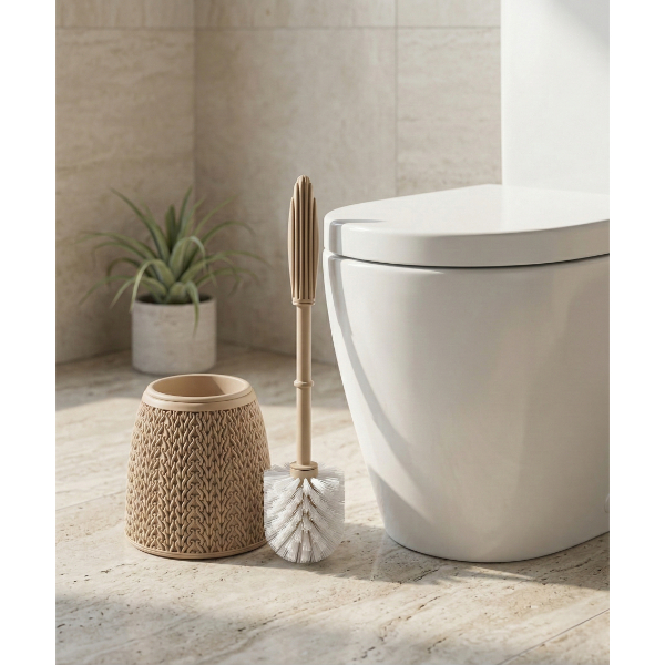 Örgü Desenli Tuvalet Fırçası, banyo ve tuvalet alanlarınızda hijyeni şık bir tasarımla buluşturur. Gövdesi üzerindeki zarif örgü desenli doku, klasik banyo aksesuarlarından ayrılarak mekanınıza modern ve estetik bir hava katar. Ürünün fırça sapı ile entegre olan koruyucu kapak mekanizması, fırçanın kova içerisinde tamamen kapalı kalmasını sağlayarak hem kötü kokuların yayılmasını önler hem de görsel olarak temiz bir duruş sergiler. Yüksek kaliteli ve dayanıklı plastik materyalden üretilen bu modern tuvalet fırçası, neme ve suya karşı dirençli yapısıyla uzun ömürlü kullanım sunar. Ergonomik fırça sapı, kullanım sırasında konforlu bir tutuş sağlarken pürüzsüz dış yüzeyi sayesinde kova kısmı kolayca temizlenebilir. Hem ev hem de ofis banyoları için ideal olan bu dekoratif temizlik ürünü, kompakt formuyla dar alanlarda bile fonksiyonelliği ve şıklığı bir arada sunar.