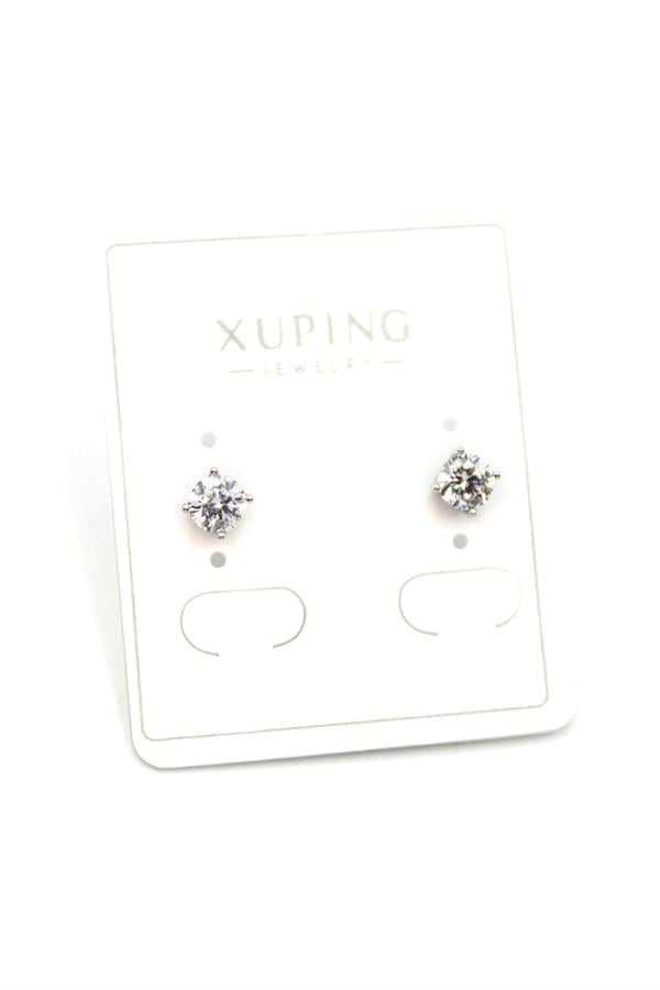 Orta Boy Tek Taş Küpe - Gümüş