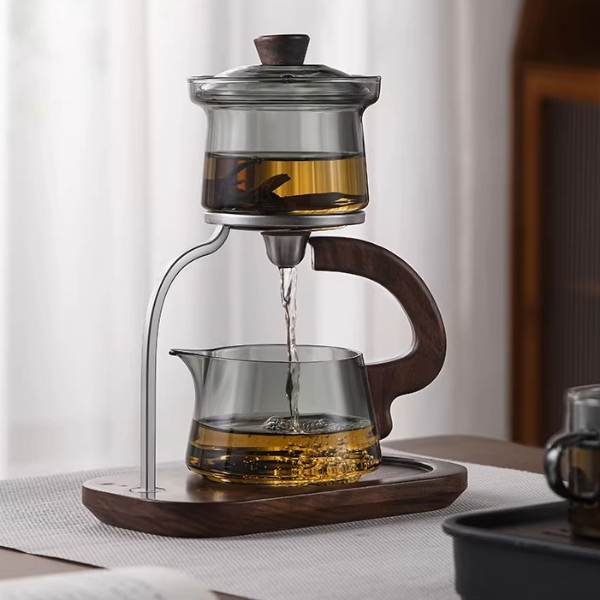 Zarif tasarımı ve yenilikçi yapısıyla öne çıkan Otomatik Manyetik Borosilikat Demlik Seti, çay keyfini şıklık ve pratiklikle buluşturur. Isıya dayanıklı borosilikat cam malzemeden üretilmiş olup, yüksek sıcaklıklara karşı dirençlidir ve uzun ömürlü kullanım sağlar. Şeffaf cam yapısı sayesinde demlenme sürecini kolayca takip edebilirsiniz.Manyetik otomatik akış sistemiyle donatılan üst demlik, alt hazneye çayı kontrollü bir şekilde aktarır. Bu özellik, hem taşırmadan hem de damlatmadan pratik kullanım imkânı sunar. Modern tasarımlı ahşap taban ve metal destekli standı, mutfakta veya misafir sofralarında dekoratif bir görünüm oluşturur.Ergonomik tutma sapı sayesinde güvenli kullanım sağlar. Hem siyah çay hem bitki çayları için uygundur. Günlük kullanımda ya da özel davetlerde estetik ve konforu bir araya getirir.