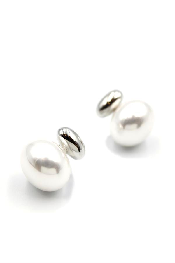 Oval İnci Küpe - Gümüş