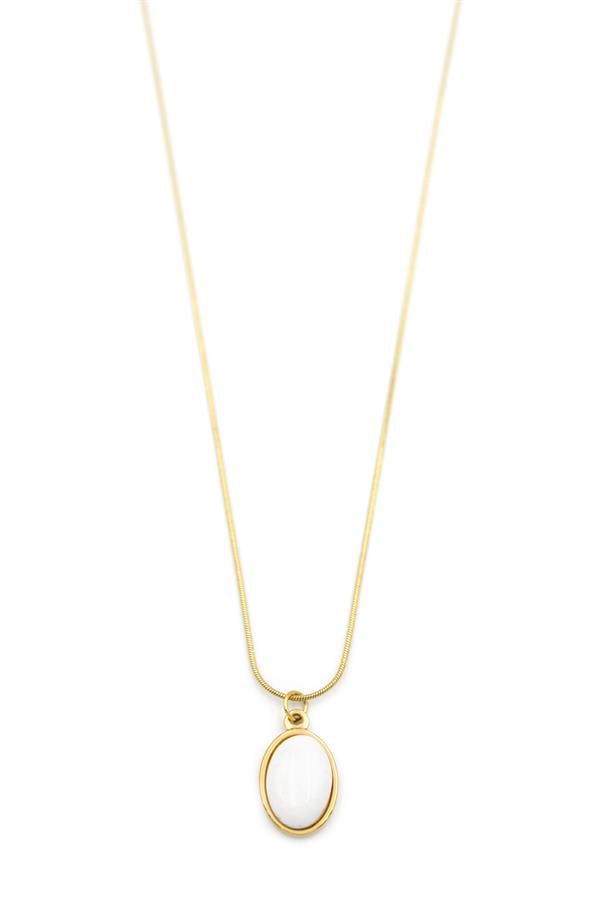 Oval Taşlı Kolye - Beyaz