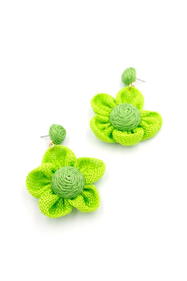 Papatya Hasır Küpe - Yeşil
