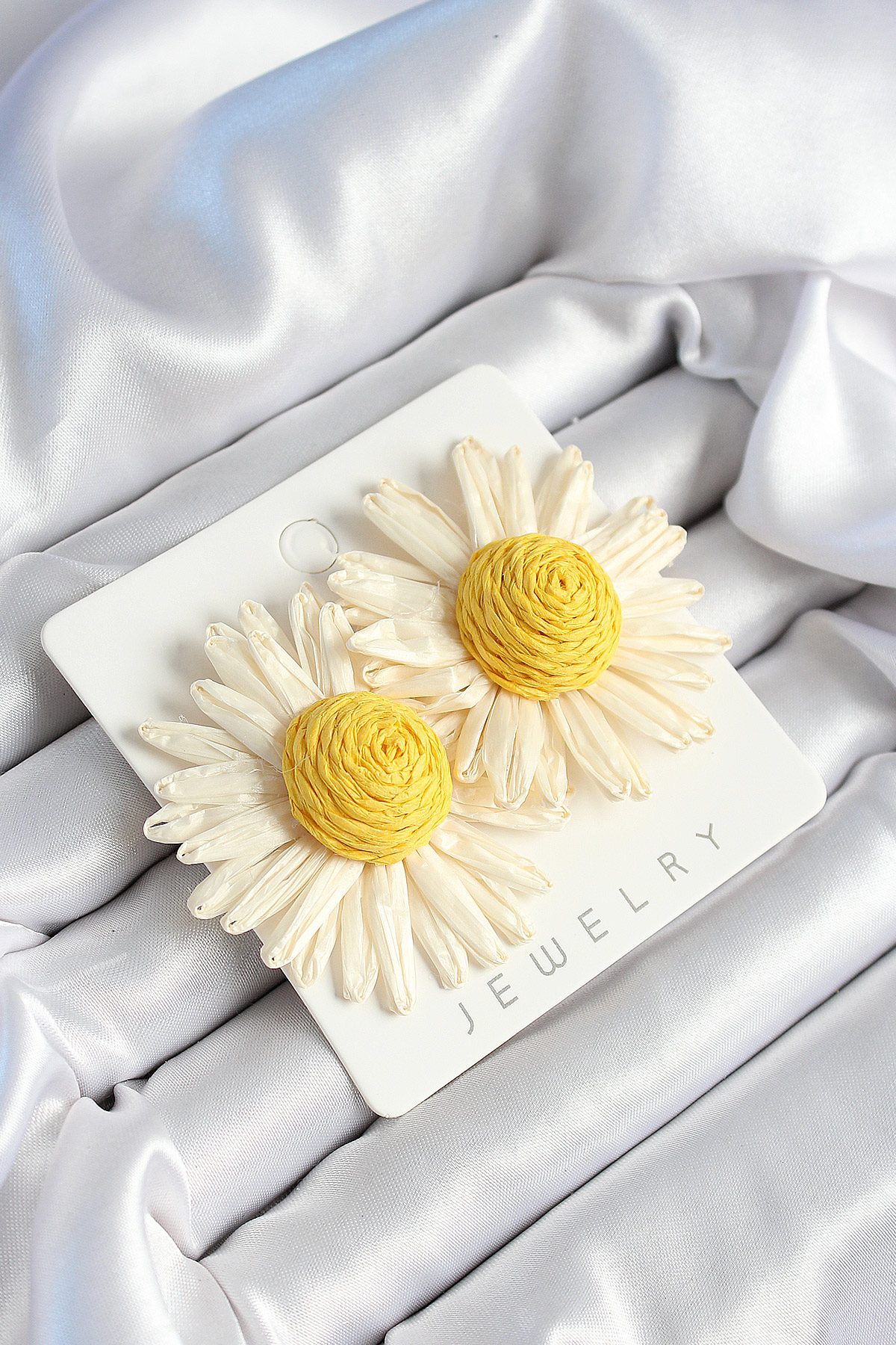 Papatya Model Beyaz Ve Sarı Renk Kadın Küpe - TJ-BKP10635