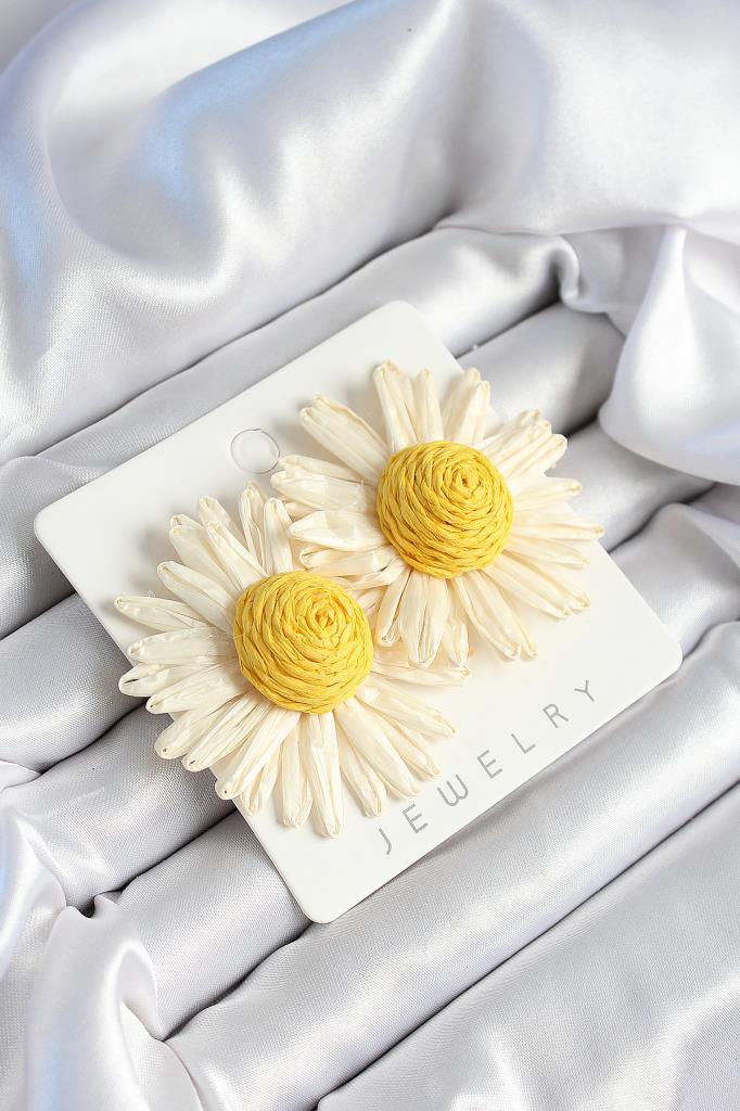 Papatya Model Beyaz Ve Sarı Renk Kadın Küpe - BKP10635