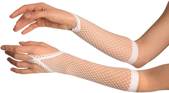 Karnavalınıza ve cadılar bayramı kılığınıza orijinal dokunuşu verecek uzun beyaz örgü eldivenler | Görünümünüzü bu 26 cm beyaz örgü eldivenlerle tamamlayın