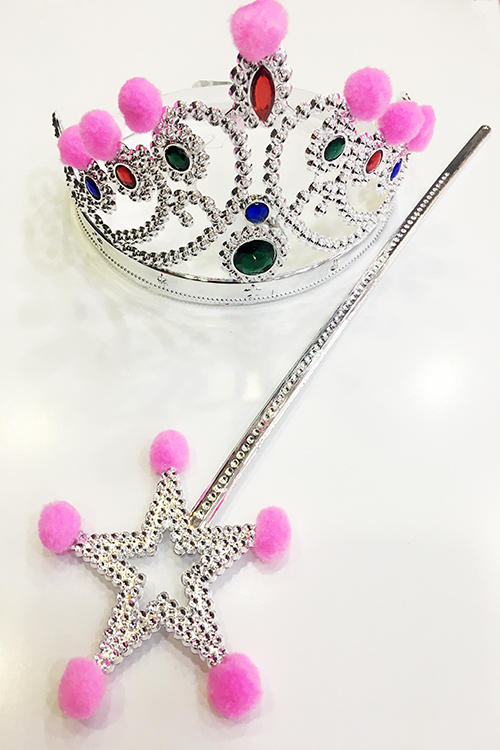 Parti Aksesuar Pembe Ponponlu Gümüş Renk Prenses Tacı ve Gümüş Renk Prenses Asası