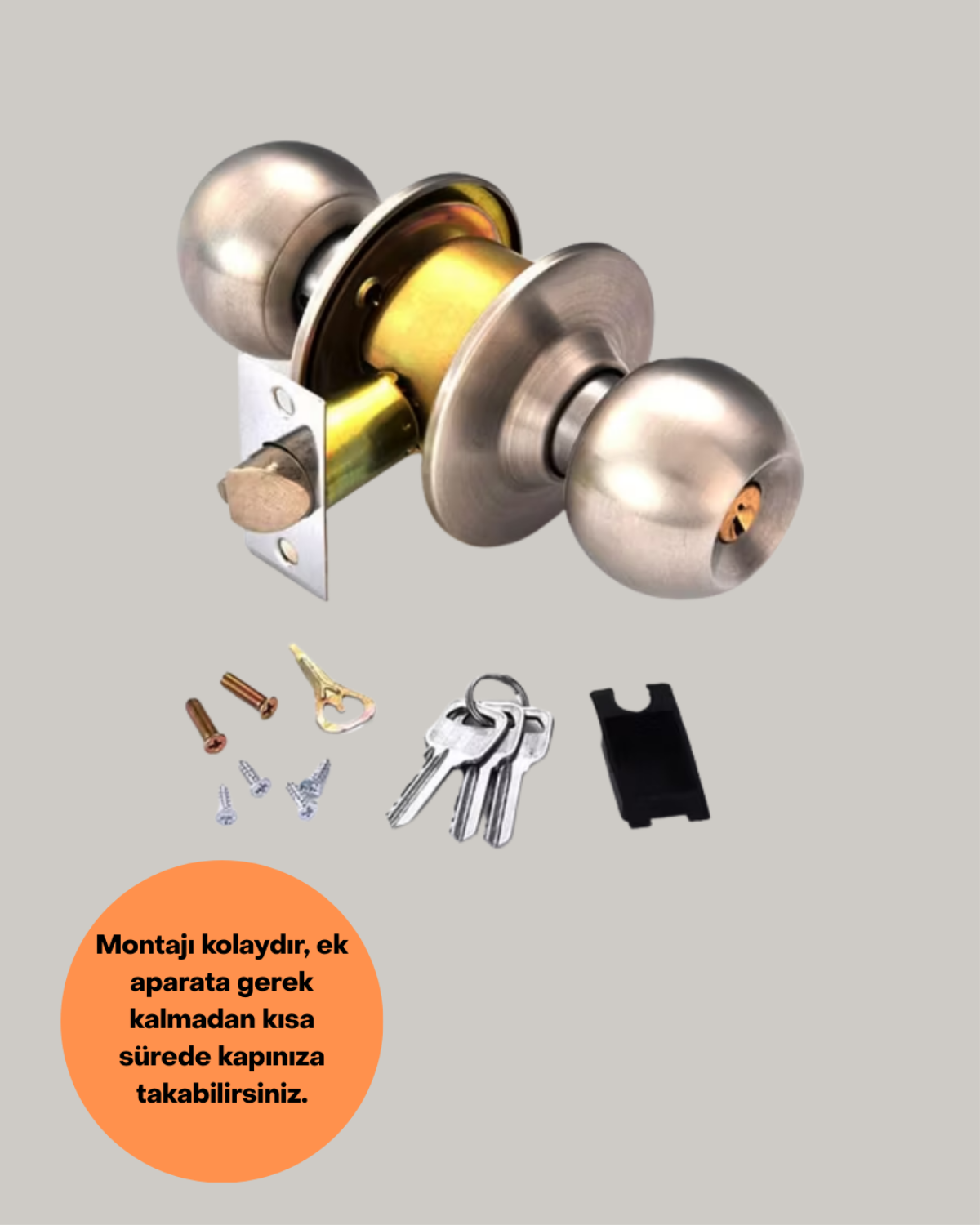 Evinizin güvenliği için sağlam bir çözüm sunan topuzlu kapı kilidi, estetik görünümüyle de ön plana çıkar. Mat rengi, modern dekorasyonlarla bütünleşerek şık bir atmosfer oluşturur. Paslanmaz çelik gövdesi sayesinde uzun süreli kullanımda ilk günkü sağlamlığını korur. Montajı son derece kolaydır; eğer kapınızda montaj delikleri hazırsa yalnızca tornavida kullanarak kısa sürede kurulum yapabilirsiniz. Kapı kalınlığına göre uyum sağlayan bu kilit, 53-70 mm ölçülerinde kullanılabilir. 2-3/8” ve 2-3/4” ayarlanabilir cıvata mandalı ile pratiklik sunar. Hem iç kapılarda hem de giriş kapılarında kullanılabilen ürün, üç anahtarıyla beraber teslim edilir. Hem fonksiyonel hem de estetik yapısıyla günlük kullanım için mükemmel bir tercihtir.