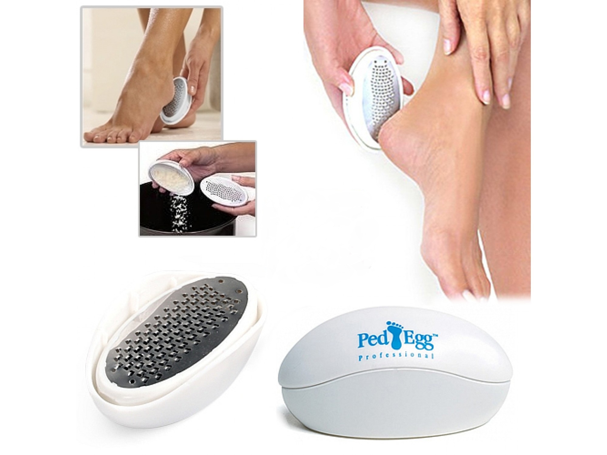 Ped Egg paslanmaz çelikten ve 130 hassas mikro dokudan oluşmaktadır.Kurumuş ölü derileri can yakmadan sağlıklı deriye zarar vermeden temizler.Ölü derileri haznesinde biriktirir yerlere dökmez. Nasırları hızla temizler.