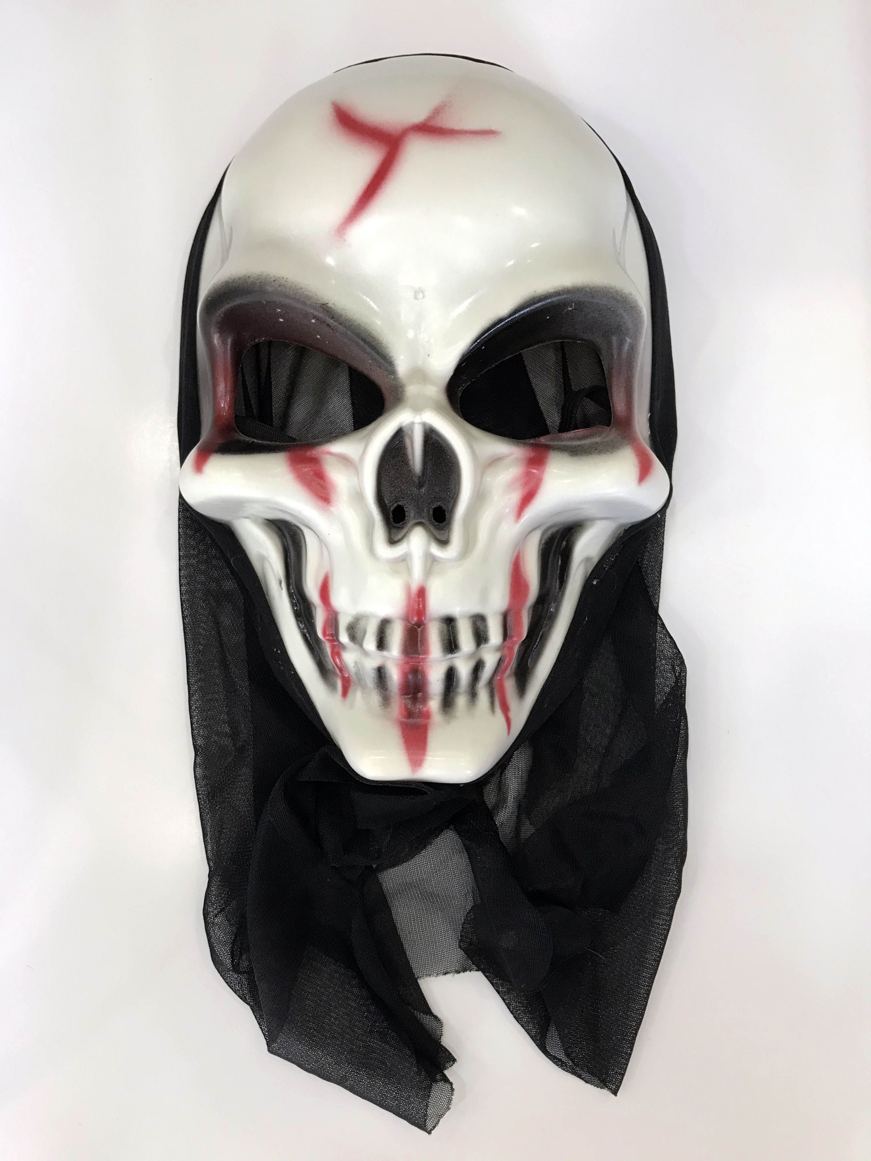 Pelerinli Kanlı Surat Kırmızı Şeritli Korku Maskesi
