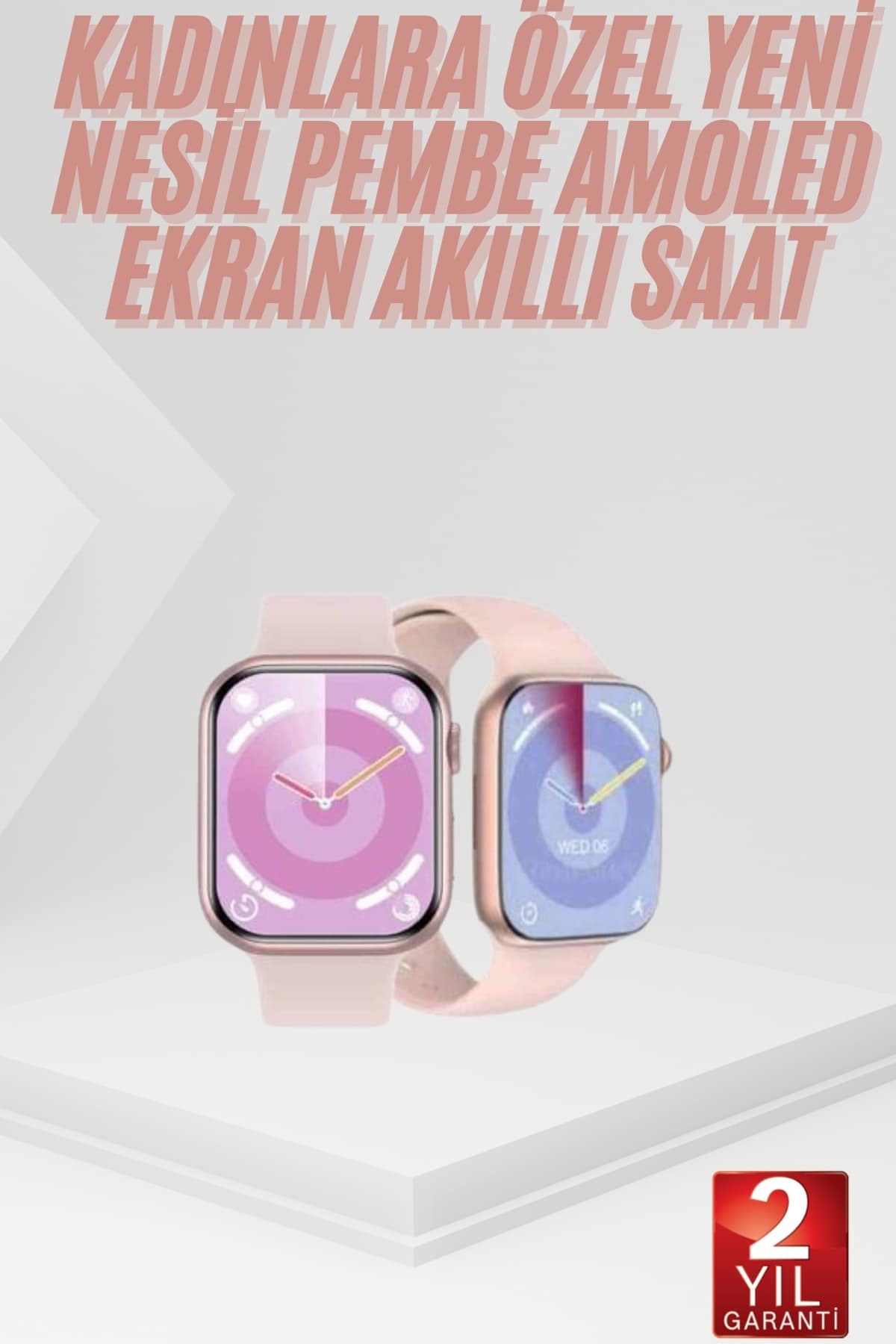 Bu ultra akıllı saat, şıklığı ve teknolojiyi bir araya getirerek günlük hayatınızı kolaylaştırır. 2.4 inç HD ekranı, 49 mm zarif kasası ve gelişmiş özellikleri ile her anınızda yanınızda olabilecek mükemmel bir yardımcıdır. Bluetooth üzerinden arama yapabilir veya gelen aramaları doğrudan saatinizden yanıtlayabilirsiniz. Sağlık takibi özellikleri arasında kalp atış hızı, uyku analizi ve kandaki oksijen seviyesi ölçümü bulunur, bu sayede sağlığınızı sürekli olarak takip edebilirsiniz. Ayrıca, tüm uygulama bildirimlerinizi saatinizden alarak günlük hayatınızı daha verimli hale getirir. 300 mAh batarya kapasitesi ile 2 güne kadar kullanım sunar. Saatin tasarımında pembe ve gri olmak üzere iki farklı kordon seçeneği bulunmaktadır ve kolayca anlaşılır Türkçe kullanım kılavuzu ile birlikte gelir. Spor aktiviteleriniz için özel modlar (koşu, bisiklet, yürüyüş, yüzme vb.) ile destekler ve günlük planlarınızı takip etmenizi sağlayacak takvim ve hatırlatıcı özellikleri sunar. Saat, alarm, kronometre ve uyku takibi gibi birçok kullanışlı özellik ile birlikte gelir ve hava durumu bilgilerine anında erişim sağlar. 2.4 inç HD dokunmatik ekranı ve 49 mm kasa çapı ile oldukça şık ve fonksiyoneldir. Uyumluluğu iOS 10.0+ ve Android 5.0+ cihazlar ile tam uyumludur.