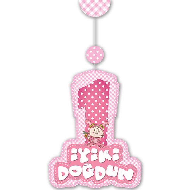 Pembe Renk Asmalı İyiki Doğdun Yazılı 1 Yaş Kız 3lü Süs Set
