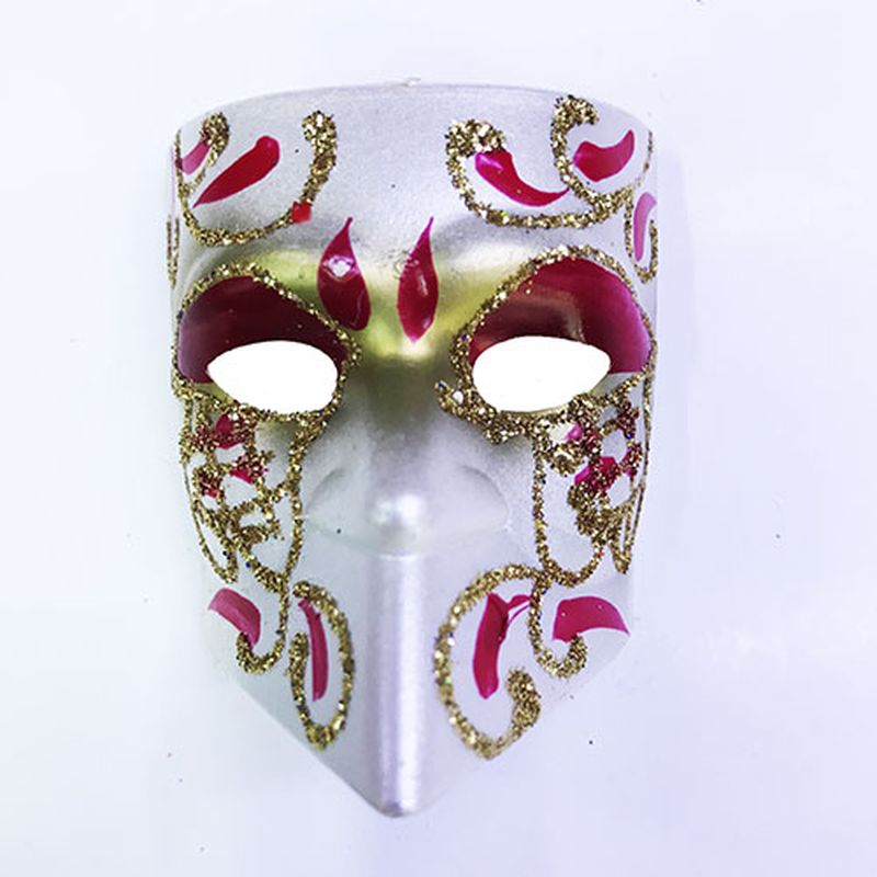 Pembe Renk İşlemeli Seramik Malzeme Tam Yüz Venedik Magnet 4x5 cm
