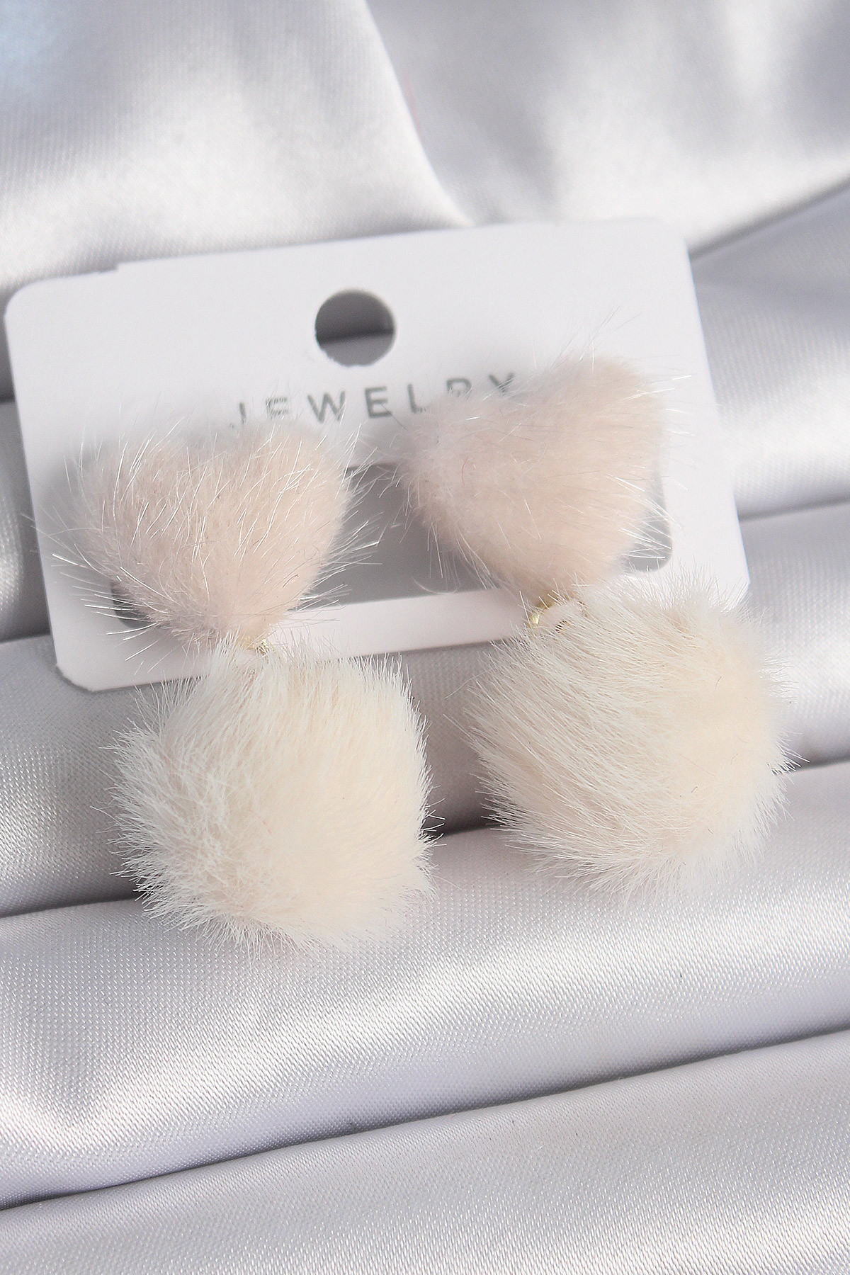 Pembe Renk Tüylü Kalp Ponpon Model Kadın Küpe - TJ-BKP9550