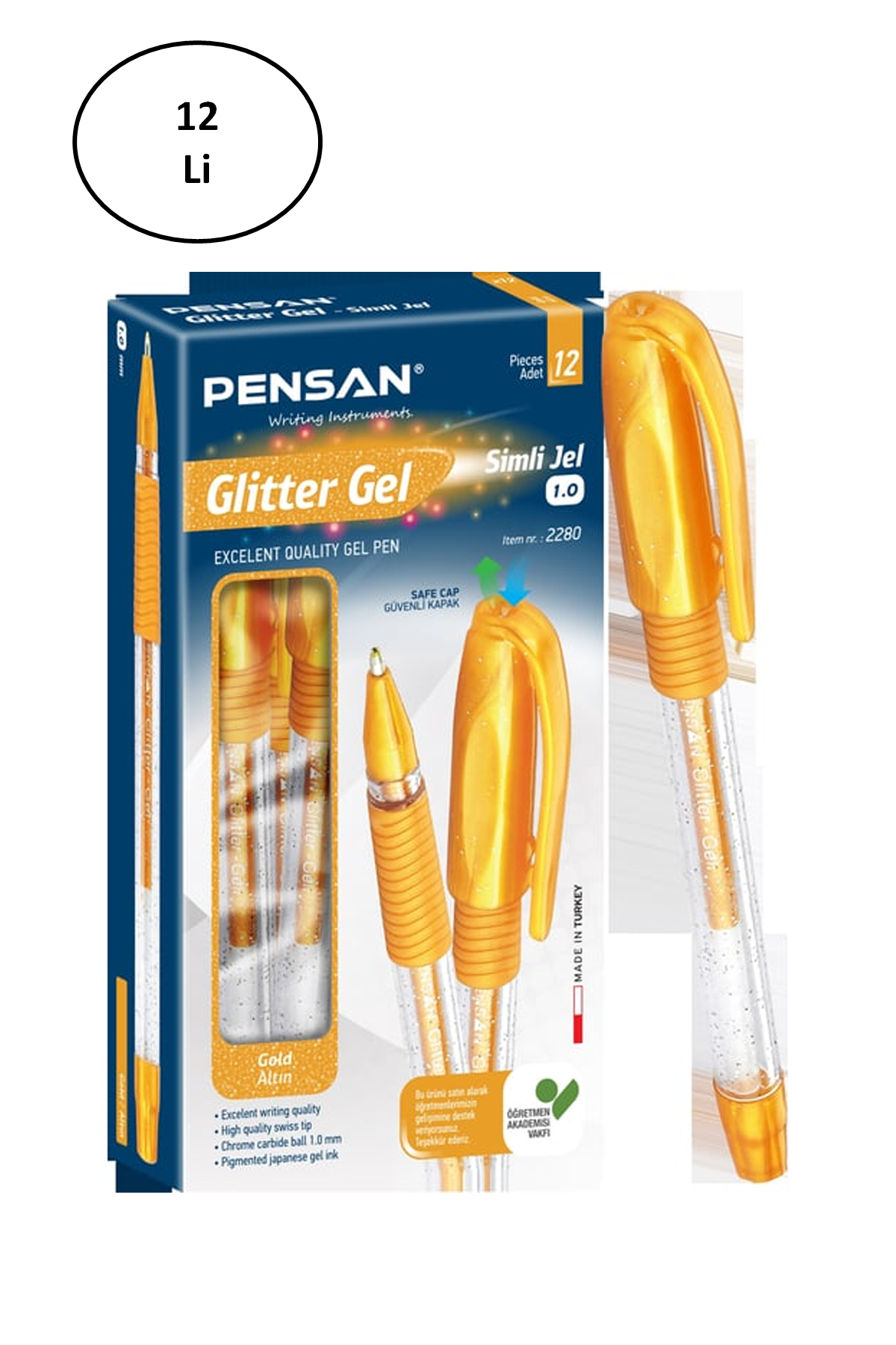 | Pensan Glitter Simli Jel Kalem 1 Mm Altın 12'li - Ürün Kodu : PEN.PE02228JKAL |